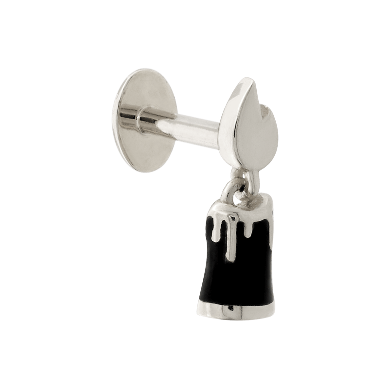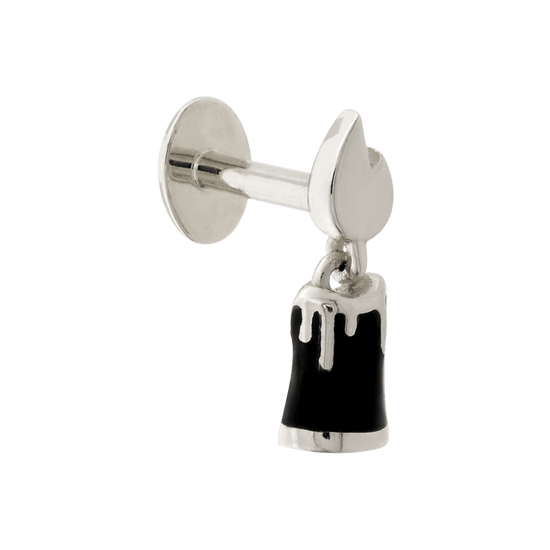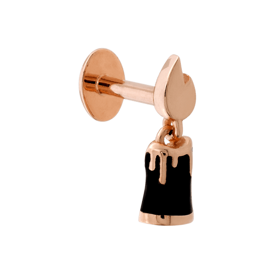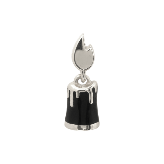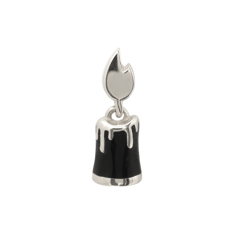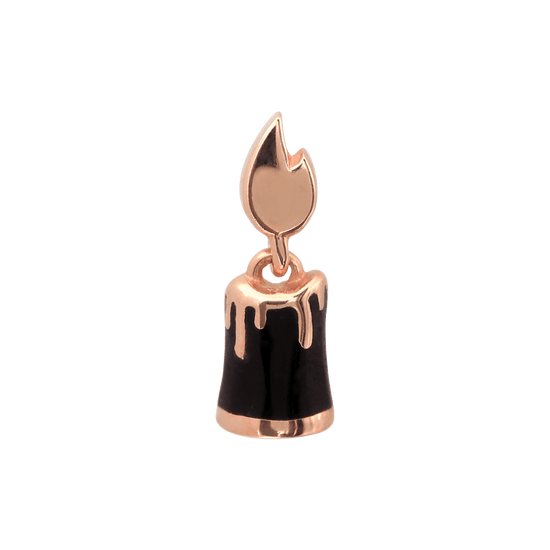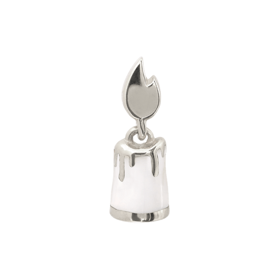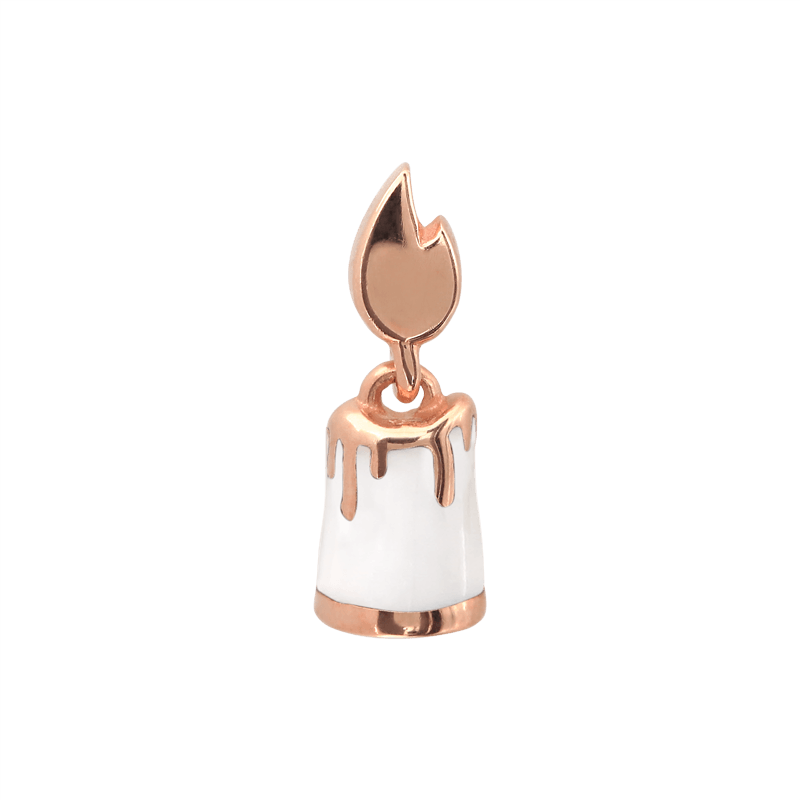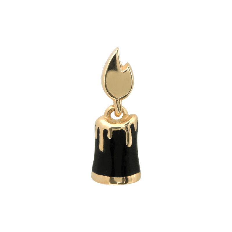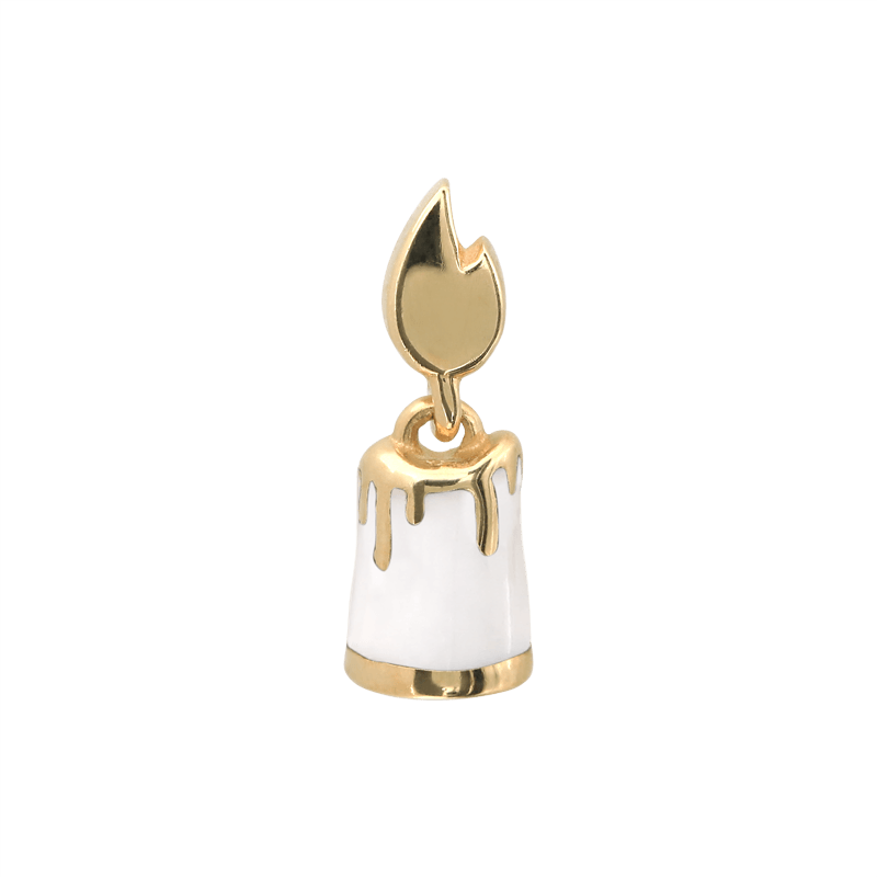 Candle shaped end with a colored candle and gold colored flame